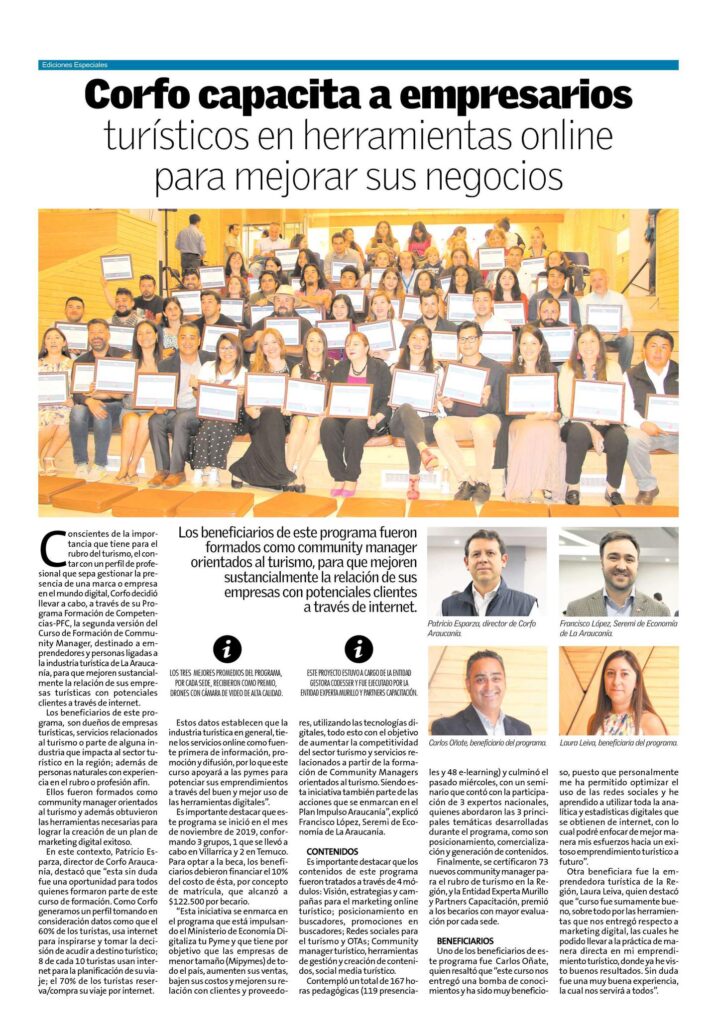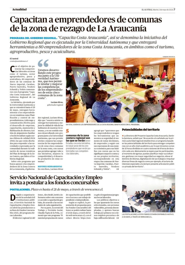 Programa de formación para 80 emprendedores y emprendedoras del Programa Potenciar el Capital Humano en zonas de rezago Costa Araucanía.